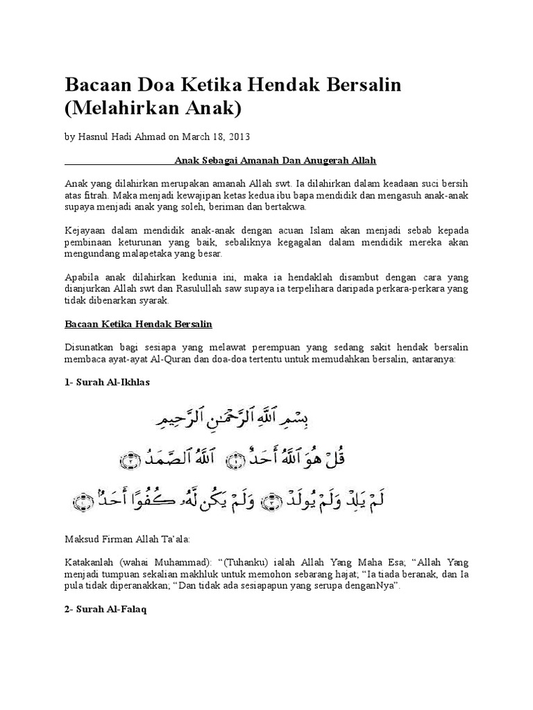 Doc Bacaan Doa Ketika Hendak Bersalin Melahirkan Anak Haviz Husaini Academia Edu